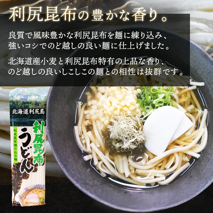 北海道産小麦の豊かな香りと利尻昆布特有の上品な風味、強いコシとのど越しの良さが特長です。